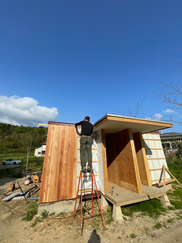 Asukai Campの衛生設備は女子トイレ2室、男子トイレ2室を揃えており、トイレは手作り木造建屋で杉板仕様で清潔感に溢れた設備となっています。